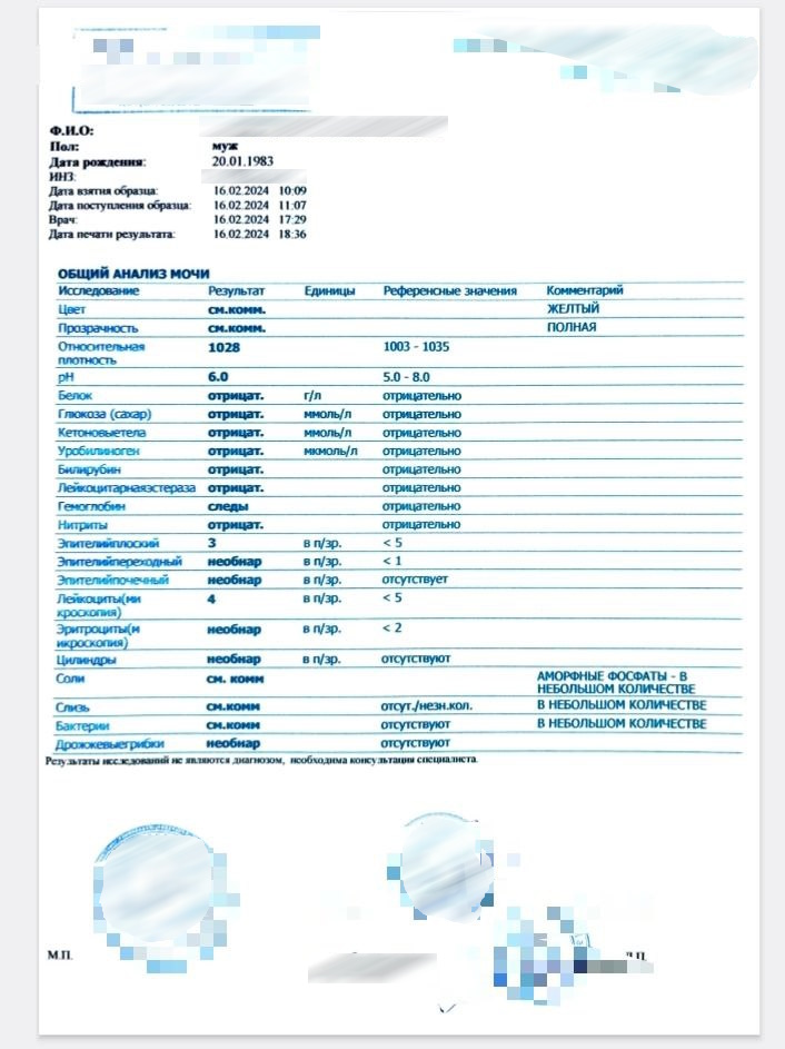 Общий анализ мочи (форма 210/у) за 10 минут в нашей клинике